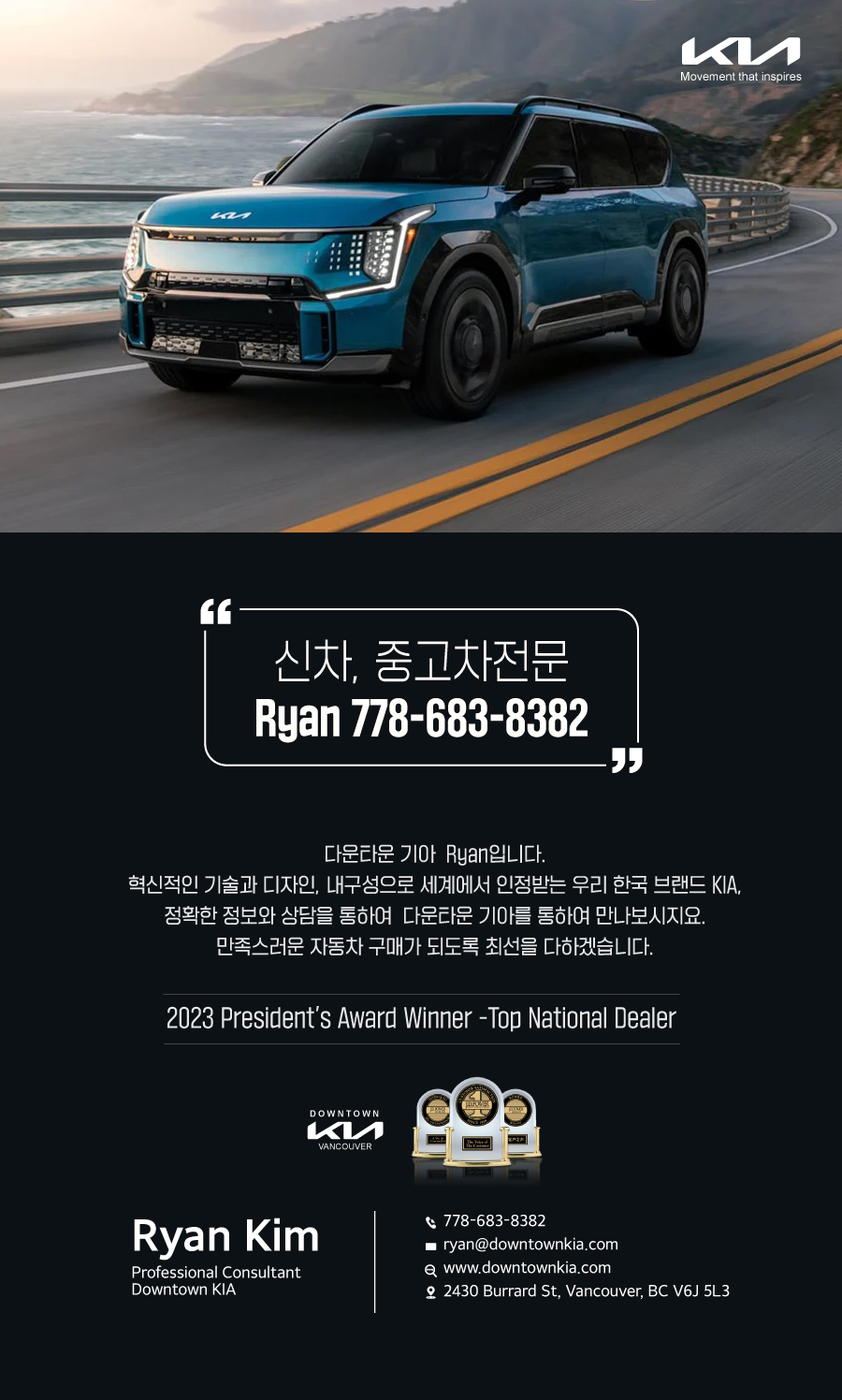 ๐์ฐ๋ฒค์ ๊ณต์๋๋ฌ๐ Downtown KIA :: ์ ์ฐจ, ์ค๊ณ ์ฐจ ์ ๋ฌธ ! Ryan 778-683-8382