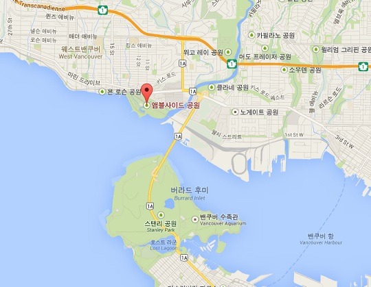요기가 앰블사이드 파크 입니다!! 저멀리 라이온즈게이트 브릿지가 보이시죠??