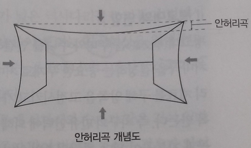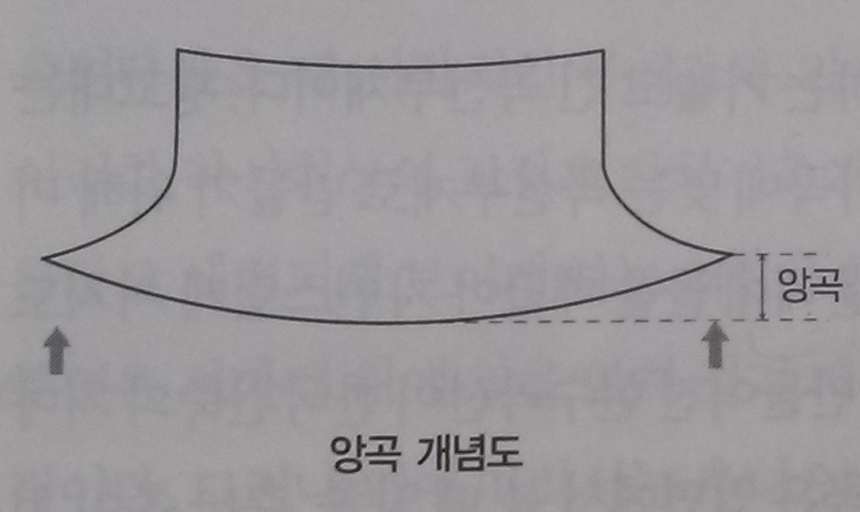 4. 안허리곡: 허마와 건물의 벽체가 안으로 휘어진 곡면. 건물 몸체의 배부름 현상 방지하여 구조적 안정성