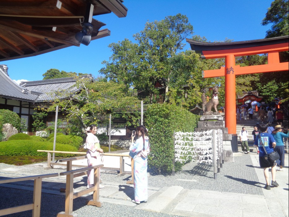 에게 가장 친숙한 신사가 바로 여우상 과 붉은색 도리이 鳥居(조거) 가 상징인 3만 2천개의 이나리 신사 입니다.