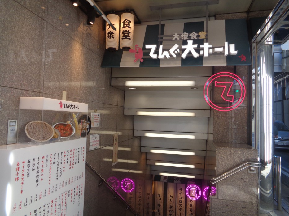시장을 구경한후 저 식당이 보이지 않아 근처에 대중식당 てんぐ大ホ-ル (덴구대홀) 이라는