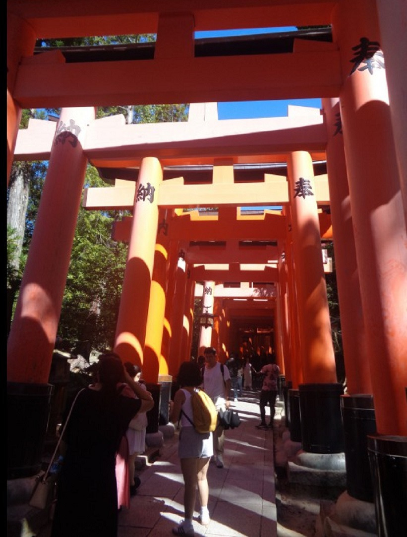 붉은 주칠을 한 도리이 가 산기슭에서 부터 꼭대기의 후시미 이나리신사 까지 구불구불 이어진다는데 4㎞
