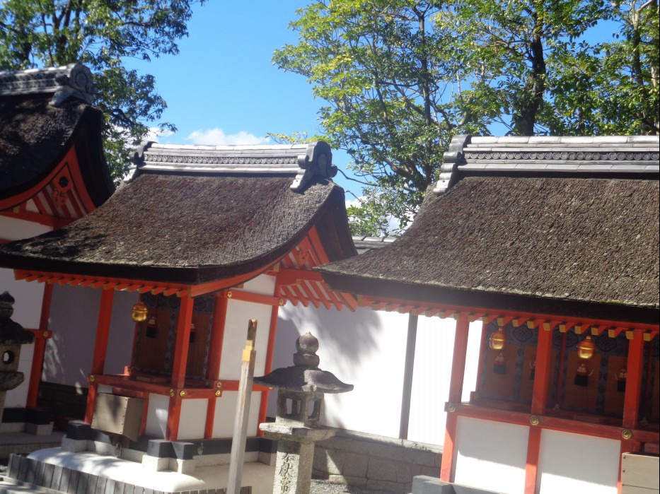 처럼 히노키피즙 나무 껍질로 만들어졌으며 처마는 검은 옻칠 바탕에 화려한 금박으로 장식을 했습니다.