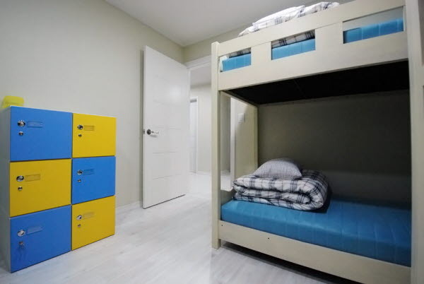 '더 자 인 강남'은 4인실 / 6인실 두개의 남녀혼합 도미토리를 가지고 있어요.