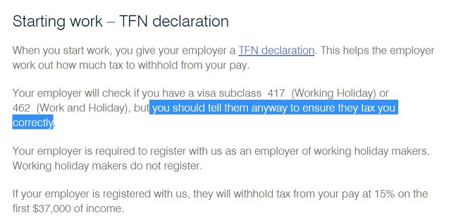 하지만 ATO에서 발표한것과 같이 비거주자이지만 워킹할리데이 비자소지자를 특별히 분류하여