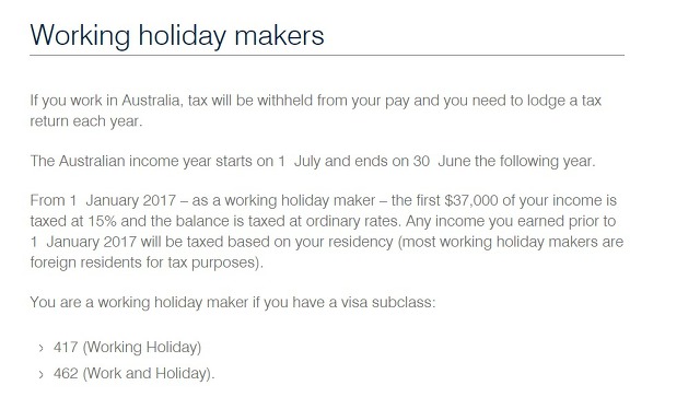 2017년 1월1일 워킹홀리데이 비자 소지자에 한해 세금 기준법이 업데이트 된건 알고 계시죠?