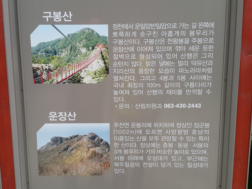 백운동 계곡은 여름이면 피서인파로 북새통을 이루기도 한다. 백운동계곡에서2.5m 거리의 취사장, 주차장까지의 계곡 일대의 수많은 폭포와 암반 뒤로 맑은 물이 넘쳐 흐른다, 정상에 서면 남덕유산, 마이산이 시야에 들어 온다.
