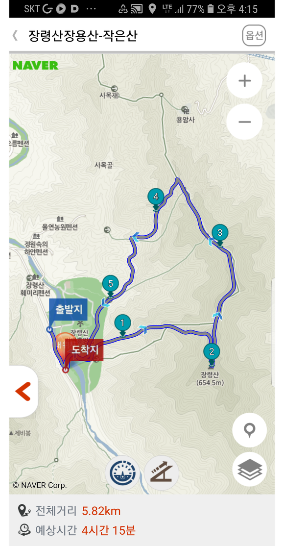 산행코스;장령산자연휴양림주차장-1코스-정상-전망대-왕관바위-거북바위-3코스-주차장
