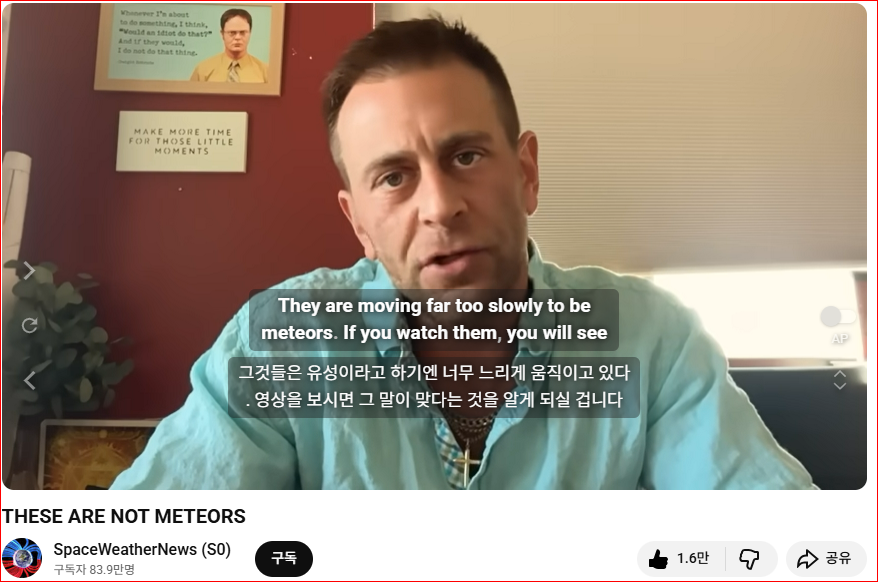 | THESE ARE NOT METEORS Time Subtitle Machine Translation 0s Hello everyone. This is just a quick message. I am here at Observer Ranch and 여러분, 안녕하세요. 간단한 메시지입니다. 저는 지금 옵저버 랜치에 있는데, 3s I'm going to have to go be me in just a second, but this deserves a quick word 잠시 후에는 원래 자리로 돌아가야 하지만, 지금 10s about all of the meteors being seen right now. 관측되고 있는 유성들에 대해 간단히 말씀드리고 싶습니다 . 14s Most of them are not meteors. Interestingly, this whole fervor began 대부분은 유성이 아닙니다. 흥미롭게도, 이러한 열풍은 18s with the Ohio meteor explosion, which was a meteor, followed by a double Space 오하이오 운석 폭발 사건(실제로는 운석이었음)에서 시작되었고, 그 뒤를 이어 같은 날 두 차례의 스페이스 26s X launch, two in the same day, visible from 22 different states. X 로켓 발사가 있었는데, 이 발사는 22개 주에서 관측되었습니다. 32s And since then, there have been several other fireballs, as most of you know. It 그리고 그 이후로도 여러분 대부분이 아시다시피 여러 차례 유성이 더 나타났습니다. 37s would be very easy for me as a space weather guy, uh, meteors are part of 우주 기상 전문가인 저로서는, 유성도 41s space weather, to jump on this and get a bunch of views given the fact that there 우주 기상의 일부이기 때문에, 은하 전류와 함께 46s is extra material coming with the galactic current sheet and we have been 추가적인 물질이 유입되고 있고 우리가 이미 이를 관측해 왔다는 점을 고려할 때, 이 기회를 활용하여 많은 관측 결과를 얻는 것은 매우 쉬울 것입니다 49s noticing it. It has been detected in the form of extra dust by event horizons out . 이는 명왕성 너머 태양 코로나까지 이어지는 사건 지평선에서 추가적인 먼지 형태로 감지되었습니다 54s past Pluto all the way to the solar corona. Would be very easy for me to . 제가 이 기회를 덥석 잡고 58s jump on this and say, "Oo, could this be the galactic current sheet?" Scare you a "어머, 이게 은하 전류표일까?"라고 말하는 건 아주 쉬운 일일 겁니다. 1:01 little bit. Get a bunch of clicks that way. The fact of the matter is, I know 약간 놀라게 해 드릴게요. 그렇게 하면 클릭 수를 많이 얻을 수 있어요 . 사실 저는 1:05 meteors. I know what we should be expecting. These things are not meteors. 유성에 대해 잘 알고 있습니다. 우리가 무엇을 기대해야 할지 알고 있어요 . 이것들은 유성이 아닙니다. 1:09 They are moving far too slowly to be meteors. If you watch them, you will see 그것들은 유성이라고 하기엔 너무 느리게 움직이고 있다 . 영상을 보시면 그 말이 맞다는 것을 알게 되실 겁니다 1:13 that is the case. Um UAP landing craft uh destroyed spy satellites. . 음, UAP 착륙선이 첩보위성을 파괴했습니다. 1:22 This is something that was in orbit. Okay, these are not meteors. This is 이것은 궤도에 있던 물체입니다. 네, 이건 유성이 아닙니다. 이것은 1:26 something that has it was either already in orbit or it slowed down and then 이미 궤도에 있었거나 속도가 줄어든 후 1:32 entered our atmosphere. These are not meteors. And so these are either UAPs or 대기권에 진입한 물체입니다. 이것들은 유성이 아닙니다. 그러므로 이것들은 미확인 비행 현상(UAP)이거나, 아니면 1:39 we are witnessing the greatest AI video hoax in history. I will admit I am not 역사상 가장 큰 인공지능 영상 조작극을 목격하고 있는 것일 수 있습니다. 솔직히 말해서 저는 1:45 the best when it comes to noticing AI videos. But I think at this point it's AI 영상인지 알아채는 데 그다지 능숙하지 않습니다. 하지만 이제는 1:51 fairly safe to say everybody agrees that there are a ton of these fireball 이러한 화구 1:55 sightings and at least the vast majority of them are not AI. There are enough of 목격 사례가 엄청나게 많다는 점과, 적어도 대다수가 인공 지능이 아닌 것은 분명하다는 점에 모두가 동의할 것이라고 생각합니다. 그런 2:00 them out there. NASA is even mentioning, hey, we have an uptick. And I'm telling 사람들은 충분히 많습니다. NASA조차도 " 증가세"라고 언급하고 있습니다. 그리고 제가 2:04 you that the the explanation that would normally be given, which I said several 며칠 전에 말씀드렸듯이, 일반적으로 제시되는 설명은 2:09 days ago, that in the spring to summertime, there should be an uptick in 봄 …에서 여름으로 넘어가는 시기에 2:14 meteors. That happens every single year. What we're seeing now aren't meteors. 유성우가 증가해야 한다는 것입니다. 그 일은 매년 일어납니다. 지금 우리가 보고 있는 것은 유성이 아닙니다. 2:21 This is something else. 이건 완전히 다른 문제입니다. |