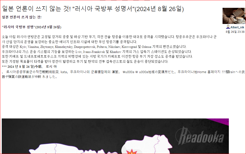 일본 언론이 쓰지 않는 것! "러시아 국방부 성명서"(2024년 8월 26일)