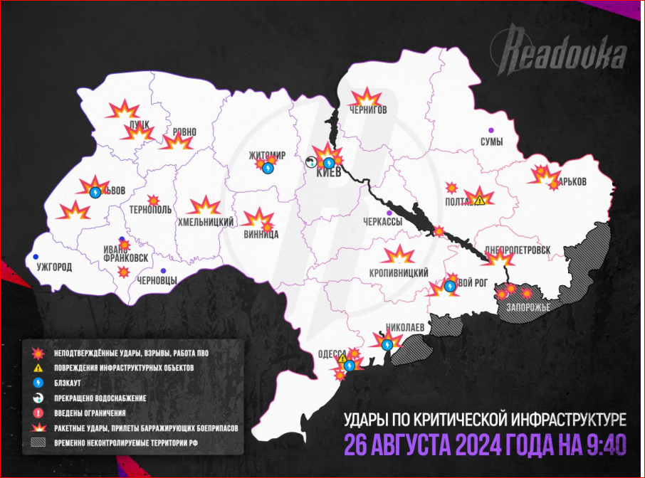 공격 대상은 Kyiv, Vinnitsa, Zhytomyr, Khmelnytsky, Dnepropetrovsk, Poltava, Nikolaev, Kirovograd 및 Odessa 지역의 변전소였습니다.