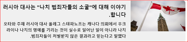 | 세계 뉴스 발행일:2024년 8월 26일 | 그리니치 표준시 13시 34분 러시아 내무부: 15개국이 옛 나치 혼카 추격에 동참러시아 내무부 언론센터는 인터폴 소속 15개국이 이미 옛 우크라이나 나치 야로슬라프 혼카를 추적하고 수색하는 과정에 합류했다고 보도했다. 군단-미디어 센터 측은 성명을 통해 “올해 8월 인터폴 사무국 수배에 훈카의 이름이 포함됐고 현재까지 인터폴 회원국 15개국이 그를 찾는 데 동참했다”고 밝혔다. 더 읽어보세요 러시아 대사: 캐나다는 오래된 우크라이나 나치 혼카를 모스크바로 인도하는 것을 거부하기 위해 꾸며낸 주장을 사용합니다.앞서 러시아 검찰은 러시아에서 궐석재판을 받고 캐나다가 인도를 거부한 우크라이나 출신 나치 혼카(Honka)가 국제 수배자 명단에 올랐다고 보고했다. Interpol 데이터베이스에도 추가되었습니다. 2023년 9월, 98세의 야로슬라프 혼카(Jaroslav Honka)는 블라디미르 젤렌스키(Vladimir Zelensky)의 방문을 계기로 캐나다 의회 회의에 초대되었습니다 . 행사 기간 동안 캐나다 하원의장은 혼카를 소개하여 청중들로부터 박수를 보냈습니다. "세계 대전 중 러시아에 대항하여 우크라이나의 독립을 위해 투사." 그러나 실제로 Honka는 나치 SS의 "갈리시아"자원 봉사 부서의 전 멤버였던 것으로 밝혀졌습니다. 이 부대에서는 우크라이나 민족 주의자들이 복무하고 적군에 맞서 싸웠을뿐만 아니라 유대인, 폴란드 인에 대한 잔학 행위를 저지른 것으로 유명했습니다. , 벨로루시인 및 슬로바키아인. 러시아 외무부는 캐나다 의회에서 나치를 공개적으로 찬양하는 것이 "저스틴 트뤼도 총리의 집권 체제를 가장 잘 표현한 것"이라고 밝혔으며, 러시아 측은 캐나다 자유주의자들의 방식을 눈감아 줄 생각이 없다고 강조했다. 옛 나치와 바람을 피워보세요. 알렉산더 바스트리킨 러시아 조사위원회 위원장은 지난해 6월 RIA 노보스티와의 인터뷰에서 캐나다가 인도를 거부한 혼카와 그의 공범들이 유대인을 포함해 최소 500명의 소련 시민을 살해하는 데 연루됐다고 밝혔다. 그리고 폴란드. 출처: 노보스티 |