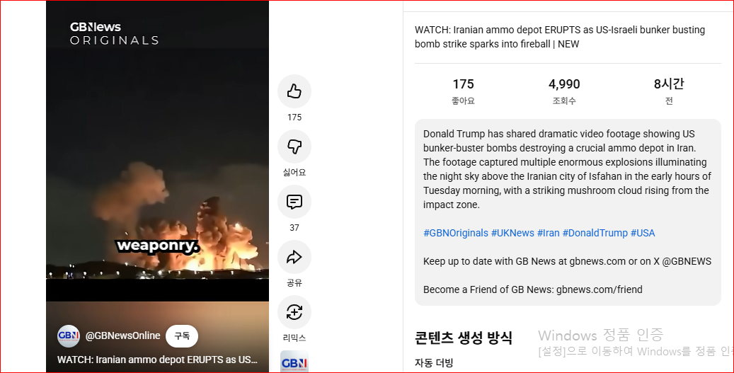 도널드 트럼프 미국 대통령이 이란 이스파한에서 발생한 대규모 폭발 영상을 공유했습니다. 언론 보도에 따르면 이 폭발은 화요일 새벽에 일어났습니다. 영상에는 연이은 폭발과 뒤이어 밤하늘을 주황색으로 물들이는 거대한 화염이 담겨 있습니다. 트럼프 대통령은 영상에 대한 어떠한 설명도 제공하지 않았지만, 언론은 이 영상이 미국과 이스라엘이 이스파한의 주요 탄약고를 공습한 장면이라고 주장합니다. 이스파한은 인구 230만 명의 도시로 바드르 공군기지가 있는 곳입니다. NDTV는 해당 영상의 진위 여부를 독립적으로 확인할 수 없었습니다. 월스트리트저널이 인용한 미국 관리에 따르면, 미군은 이스파한의 탄약고를 약 907kg(2,000파운드)급 벙커 버스터 폭탄으로 공격했습니다. 이 관리는 "이번 공습에는 다량의 벙커 버스터, 즉 관통탄이 사용됐다"고 밝혔습니다.