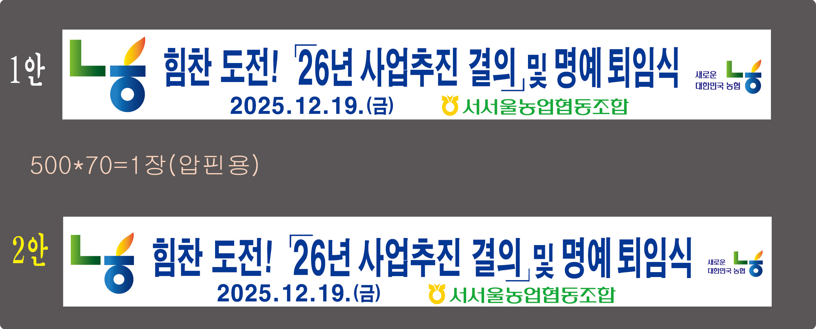 서서울농협 응암-(힘찬도전! 26년~500*70=1/압핀--보기(12.10.전자) 작성자파발마광고(홈페이지)|작성시간25.12.08|조회수17 목록 댓글 0 글자크기 작게가 글자크기 크게가 서서울농협 응암--(힘찬도전! 26년~ 500*70=1장/압핀용--₩38,500(전자)--선택◐1차보기(1안확정)--제작 (12.10.전자발행)힘찬도전! 26년 500 70 압38,500(전자) 확출33.eps836.04KB 첨부파일첨부된 파일이 2개 있습니다. jpg 파일 힘찬도전! 26년 500 70 압38,500(전자) 1차.jpg 다운로드 etc 파일 힘찬도전! 26년 500 70 압38,500(전자) 확출33.eps 다운로드 다음검색 현재 게시글 추가 기능 열기 북마크 공유하기 신고 센터로 신고 댓글 댓글 0 댓글쓰기 답글쓰기 댓글 리스트