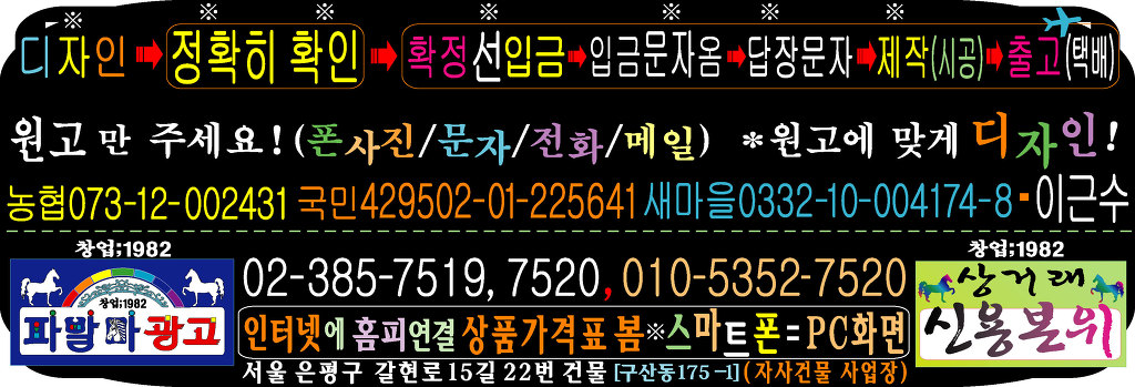 회전입간판 광고물은 디자인에 따라 매출이 UP 반영!!-디자인 인터넷 상담 (방문)하세요-(실적 예시용 임) ***(((경력속에 설계 기술성 및 무료 디자인(1~2시간 소요) 설계로 --- 소비자에게 공신력(최선의 가격)으로 사업합니다.)))*** *주문방법: 원고접수>>디자인비 선입금 2만원~>>디자인 상담(3차까지 무료)>>잔금입금>>제작>>택배(출고)로 운영 ***************************************************************************************************