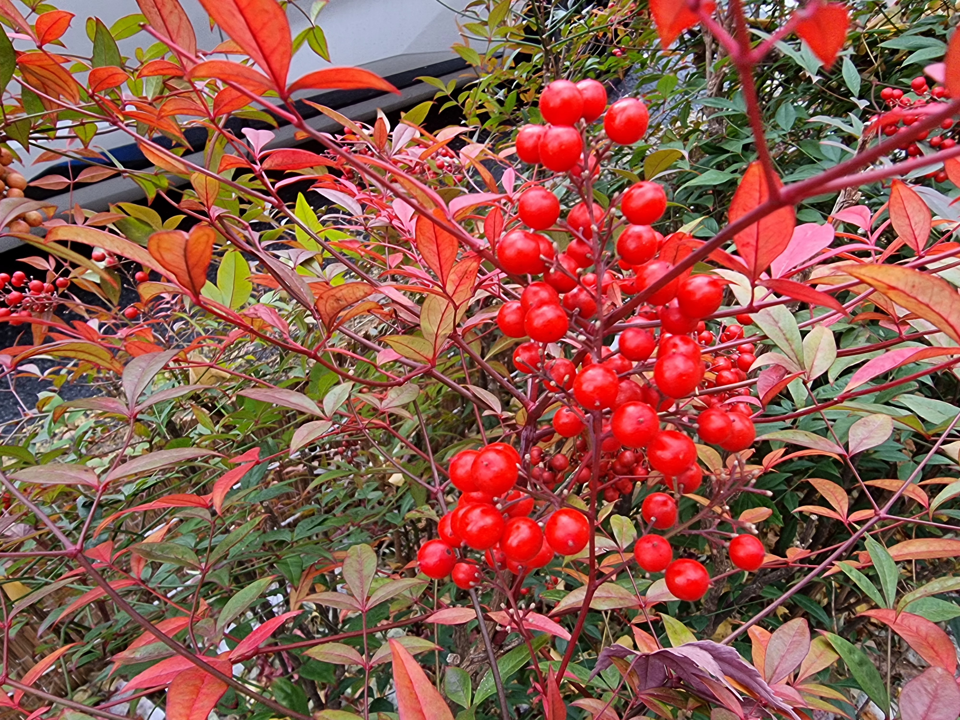 남천나무 붉은열매. 조경용나무로 겨울철 붉은 열매가 봄철 꽃보다 아름답다.,