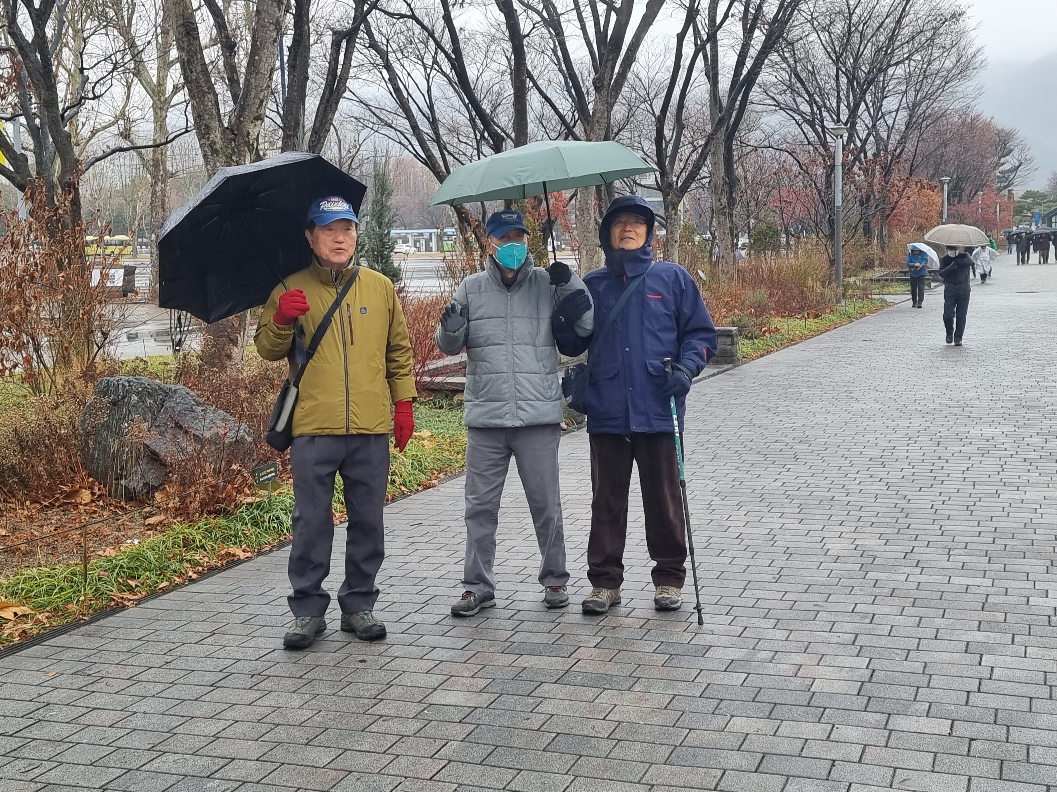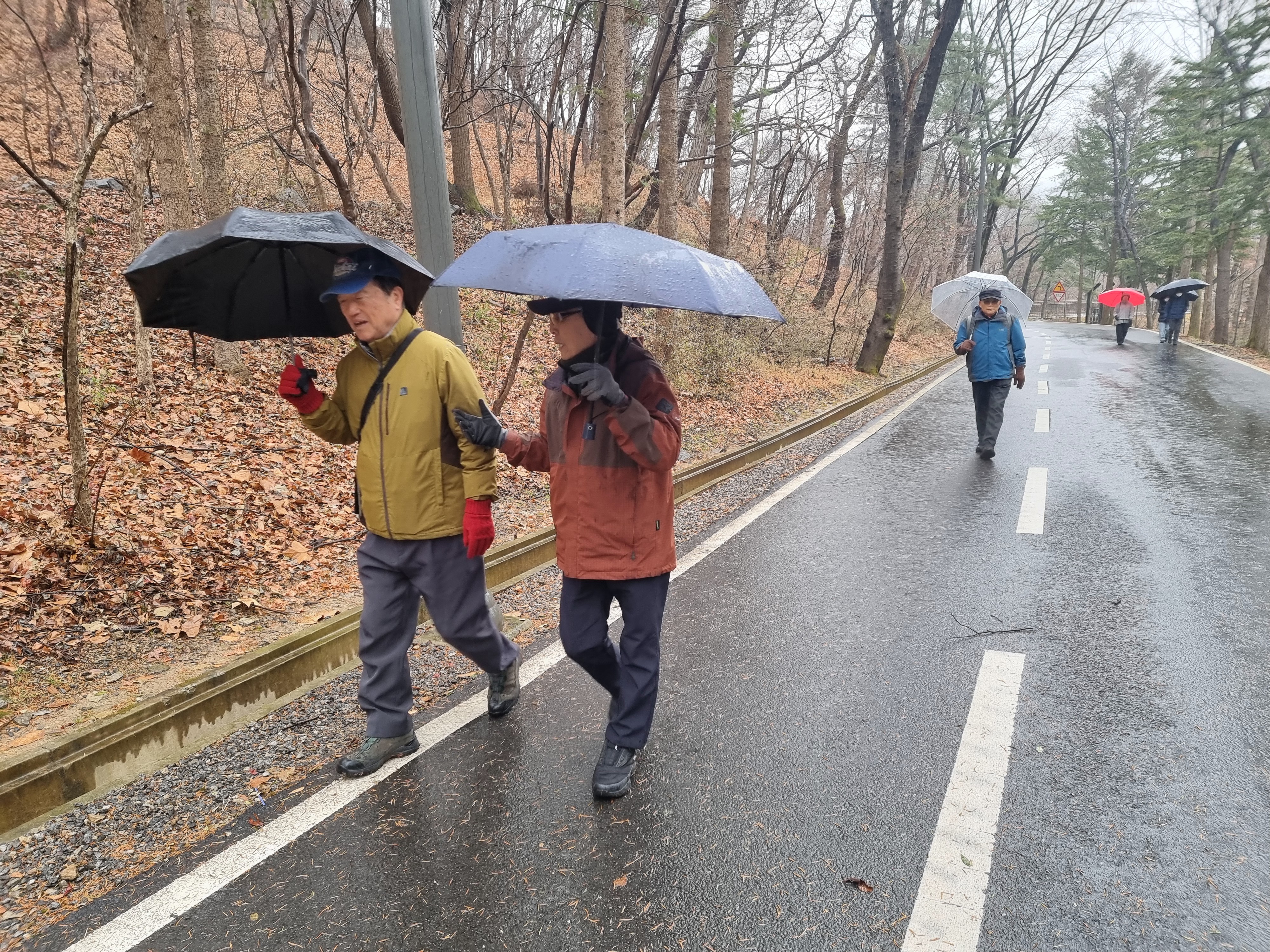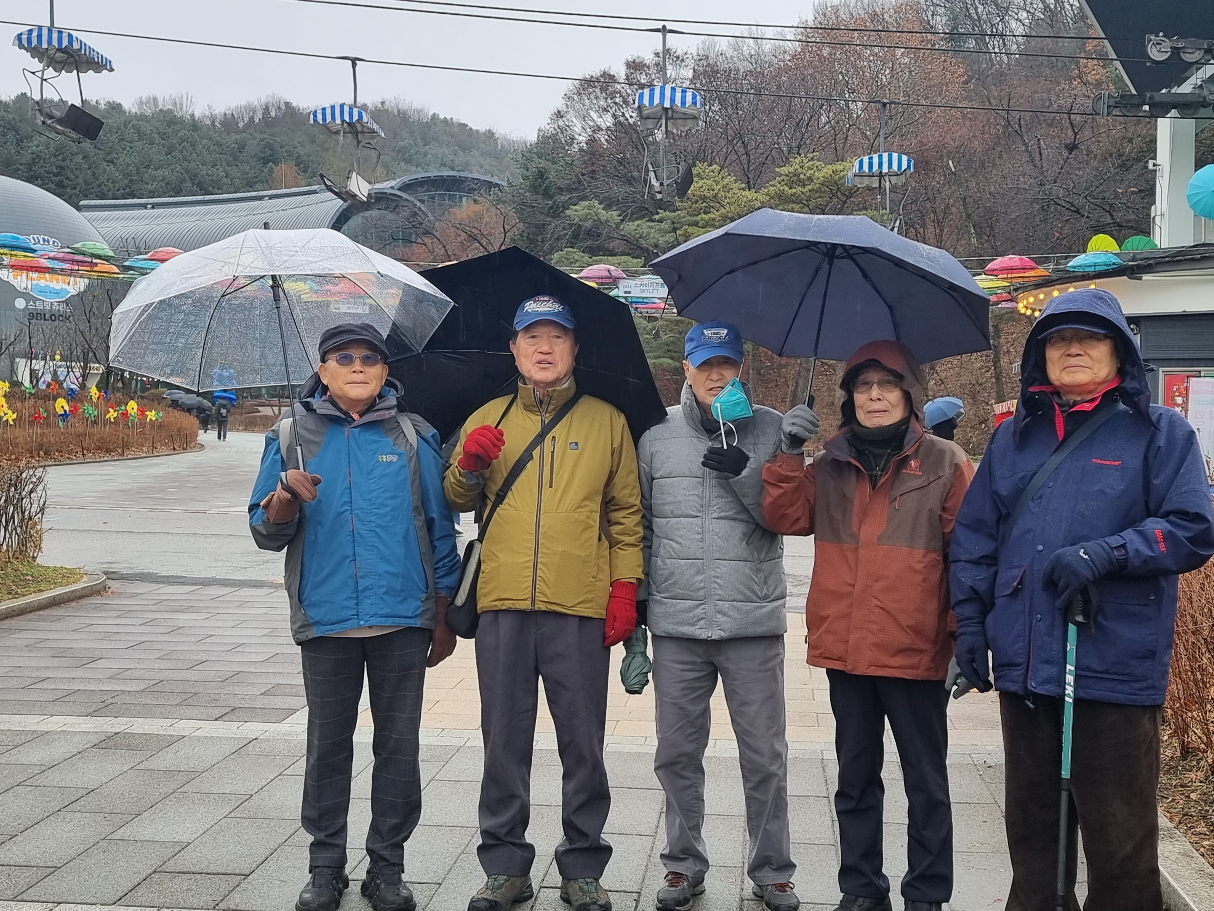 80산우회는 2025년 12월 13일(토) 10시 30분 대공원역 2번출구에서 이해균, 박광수, 홍성열, 배동헌, 백남규, 송양섭, 송남현 만나 대공원 둘레길 산책을 하였다. 배동헌, 백남규, 송남현은 안쪽 둘레길을 걷고, 이해균, 박광수, 홍성열, 송양섭은 바깥 둘레길을 돌았다. 우산을 쓰고 먼산의 안개낀 경치를 보면서 새로운 운치를 즐기며 걸었다. 점심은 사당역 조개 칼국수 집에서 즐거운 오찬을 즐기고 찻집에 들러 차를 마시고 다음 산행을 약속하였다.