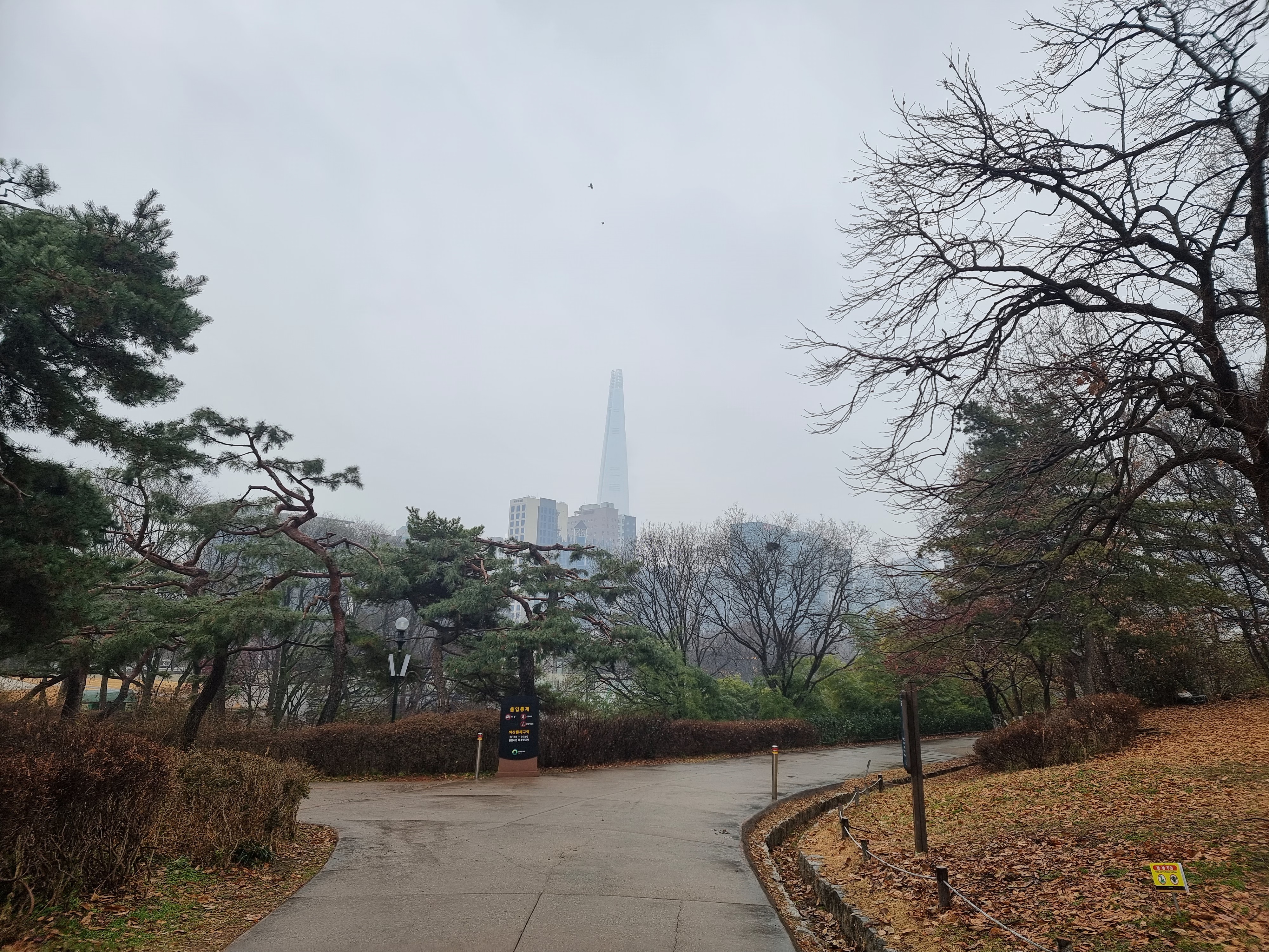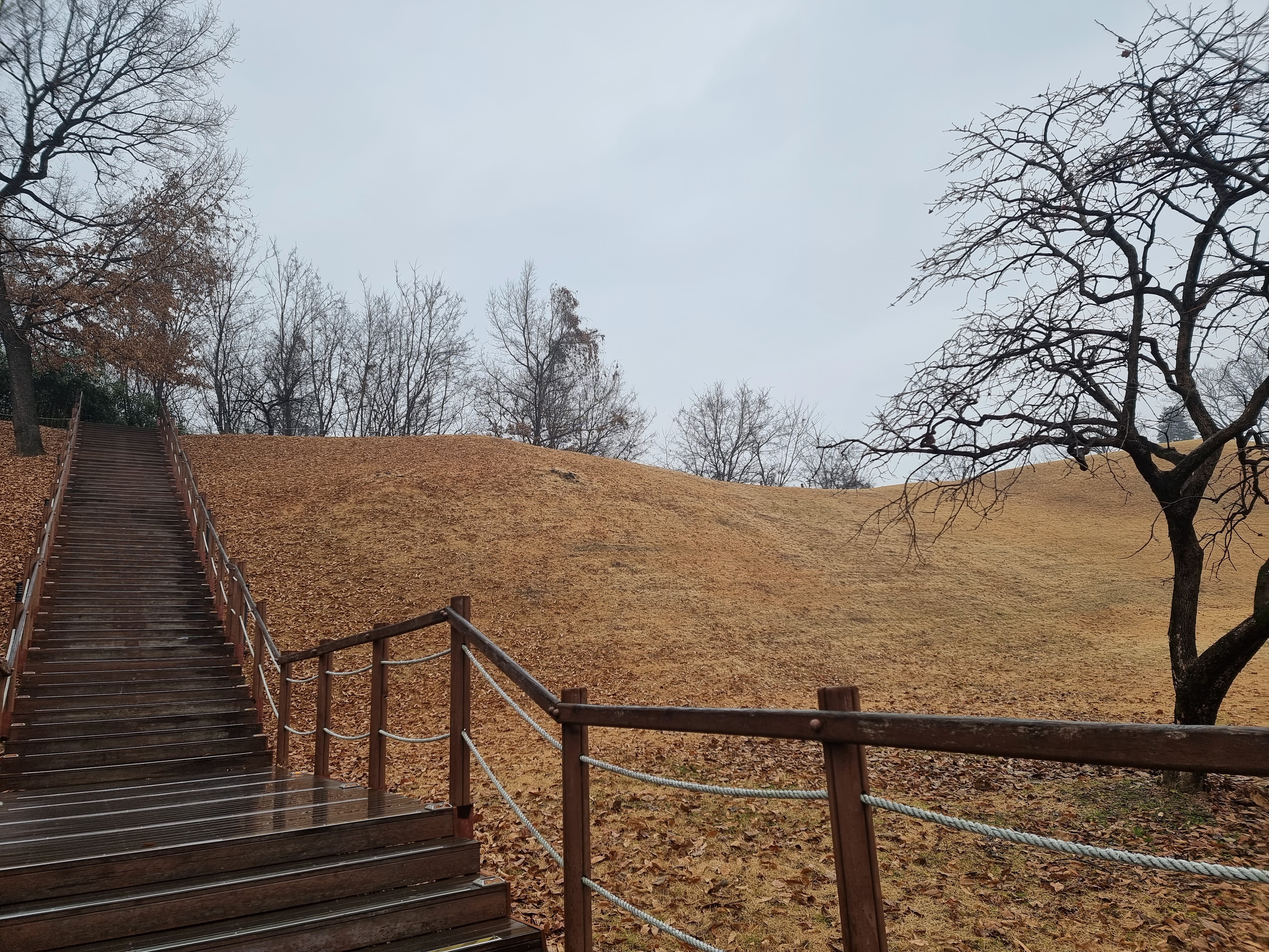 이슬비 내리는 올림픽공원 계단길