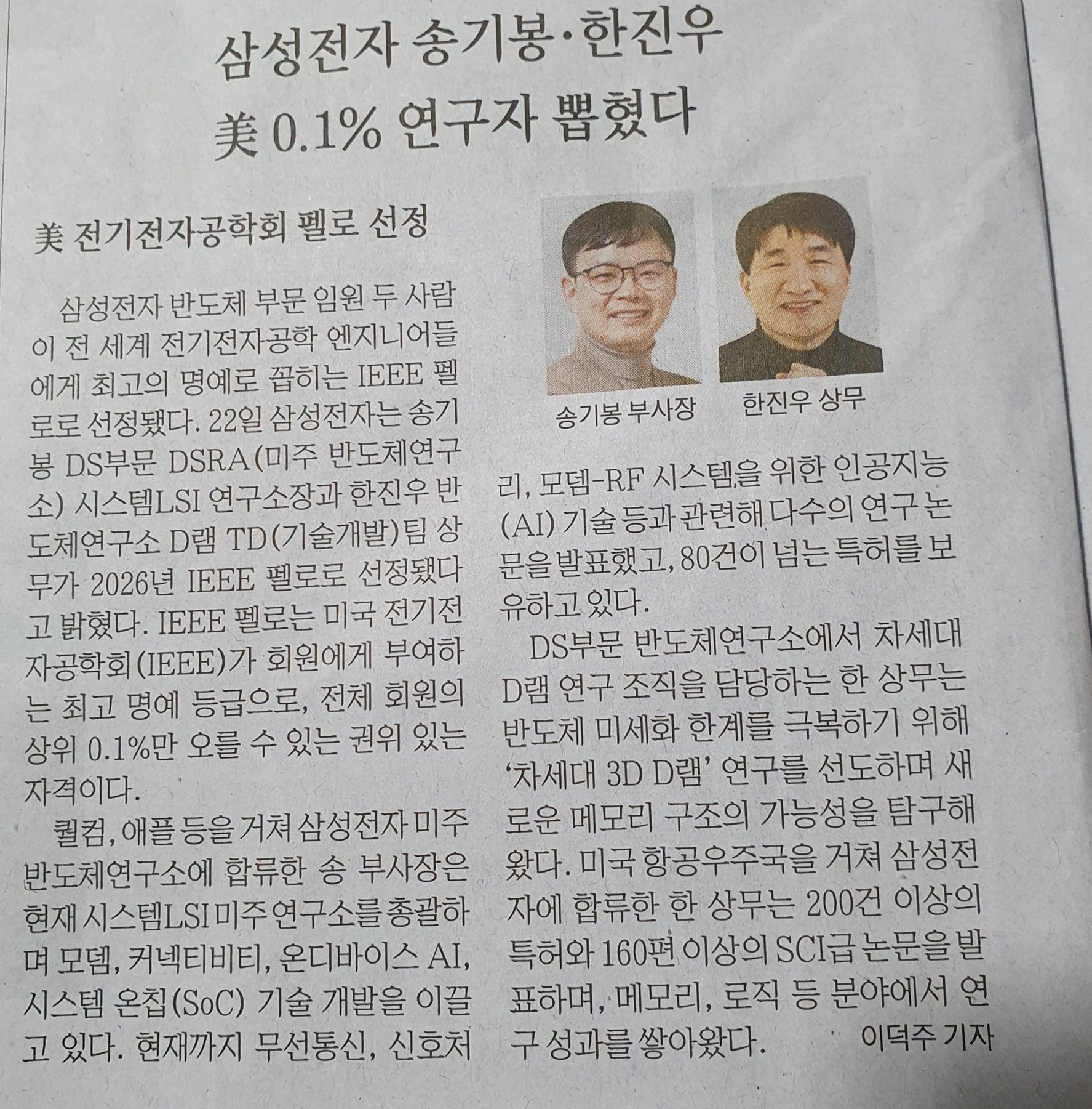 아들은 삼성 부사장 및 IEEL 펠로 선정