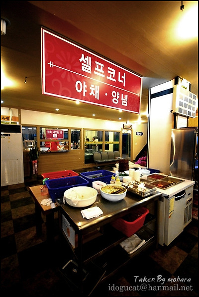 야채, 김치등은 셀프 & 무한 리필입니다. 각각의 재료들을 접시에 담아 오시는게 더 편리할 듯.