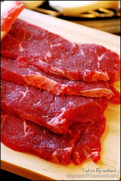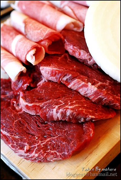 고기는 순수한 우리 품종인 누렁소에서 생산된 고기인 한우. 고깃소, 비육우라고도 하며, 고기를 먹기 위해 사육한 소에서 생산된 고기인 육우고기. 그리고 국내산 돼지고기의 얼리지 않은 진짜 생고기로 판매하고 있습니다. 4명인 저희 일행은 우선 상등심(600g: 34,000원)과 육우모듬(600g: 20,000원)으로 시작.