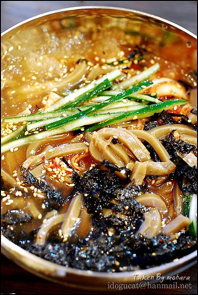 약간 달달한 것이 제 입맛엔 아주 인상적이진 않았지만 20여년의 노하우의 이 100% 수제 묵으로 만들어진 묵사발의 깔끔한 뒷 마무리는 개운함이 깃든 살얼음의 국물 맛에 대부분 만족 하실 듯.