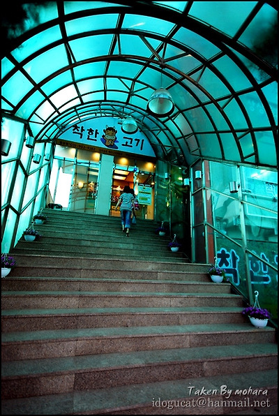 일산 풍동의 애니골 초입에 위치한 이 집은 풍동으로 들어서 경의선 기찻길을 지나 왼쪽 편의 레드크랩 골목으로 들어서면 착한고기 건물이 나옵니다. 곧 바로 2층으로 향한 계단을 오르면 내부로 들어섭니다.