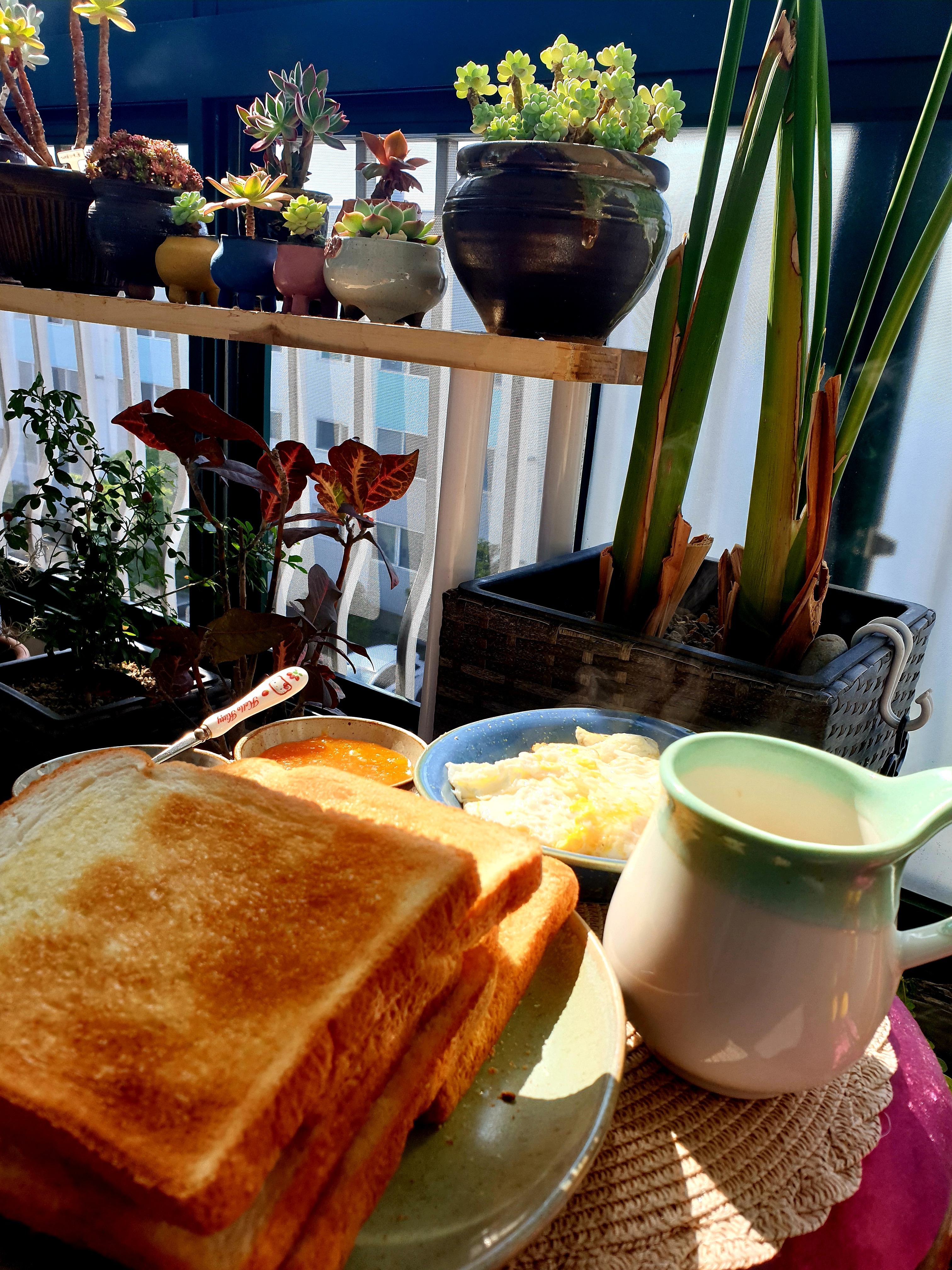 따스한 햇살 들어온 테라스에서