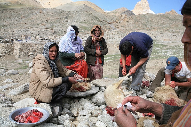 잡은 양고기를 나눠 갖는 표정들이 즐겁다.