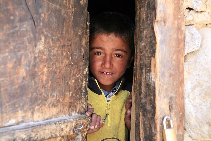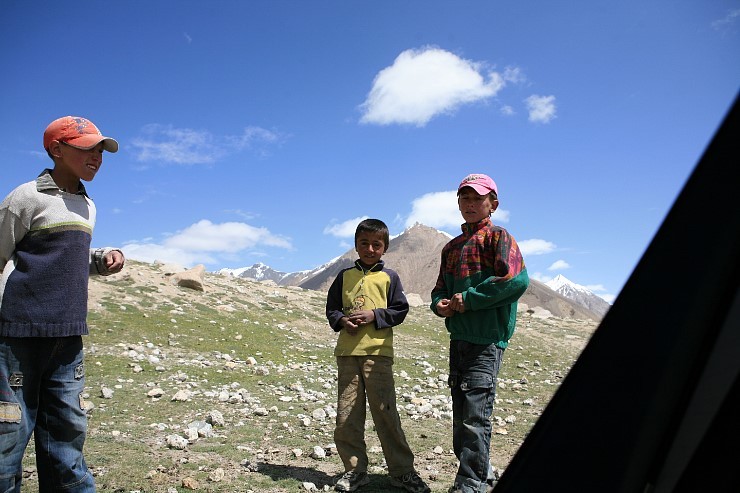 고소증의 심한 두통으로 낮에 텐트 안에 누워 있는데 외지인이 궁금해서 찾아 온 슈웨르트마을 아이들