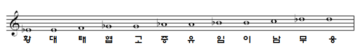 정간보의 율명을 위의 오선지에 나와있는 음에 맞추어 바꾸고