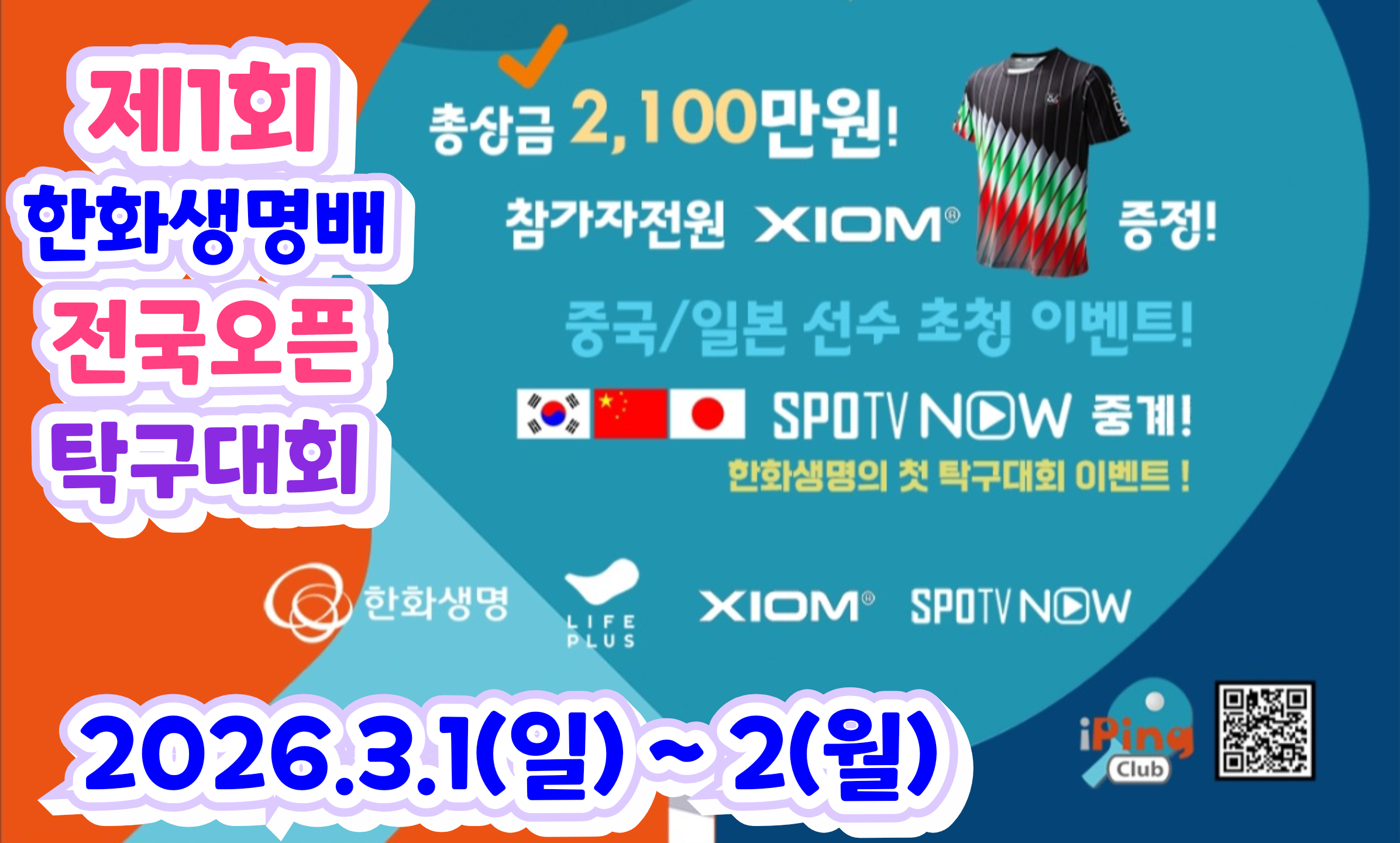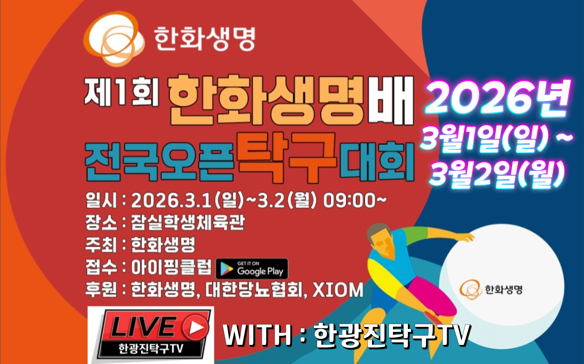 ○ 대회명 : 제1회 한화생명배 전국오픈 탁구대회