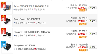 시소닉,ENEMAX,커세어 등의 명가파워도 있음.(좀 비쌈)