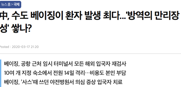 Re: 중국 우한날씨가 따뜻해지면서 코로나환자 급감? 작성자문형철|작성시간20.03.18|조회수290 목록 댓글 0 글자크기 작게가 글자크기 크게가 중국 우한의 코로나 19 발생자가 거의 나오지 않고 있음.중국 베이징에서 코로나 환자가 많이 발생 중유럽(이탈리아, 독일 등) 코로나 환자 폭발적으로 발생중미국도 마찬가지 다음검색 현재 게시글 추가 기능 열기 북마크 공유하기 신고 센터로 신고 댓글 댓글 0 댓글쓰기 답글쓰기 댓글 리스트