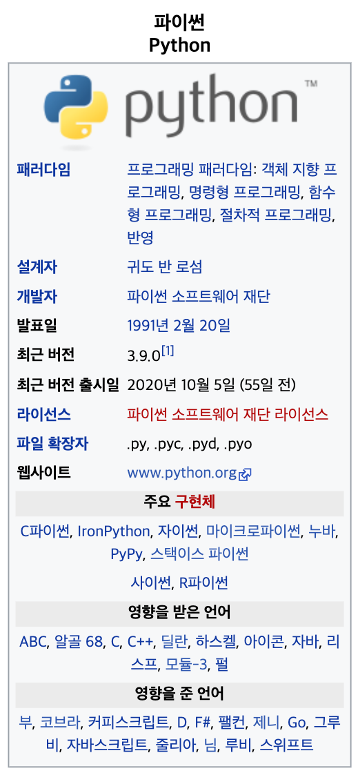 파이썬은 다양한 프로그래밍 패러다임을 지원하는 언어이다. 객체 지향 프로그래밍과 구조적 프로그래밍을 완벽하게 지원하며 함수형 프로그래밍, 관점 지향 프로그래밍 등도 주요 기능에서 지원 된다.