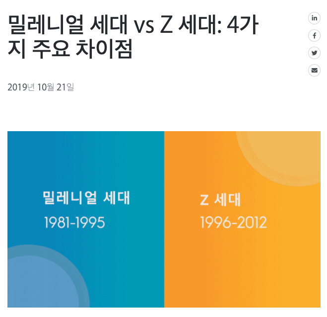 그보다 어린 z세대는 1995년이후 태어나 어려서부터 모바일폰과 스마트기기 사용에 익숙한 디지털 네이티브(digital native)세대다.