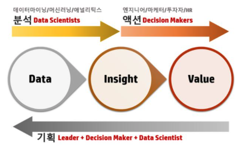반대로 전통적인 방식으로 일하는데 익숙한 기업은 데이터가 있지만 여전히 특별한 감(inspiration)에 의해 비즈니스를 한다. 데이터 전문가를 뽑고 싶지만 실력있는 전문가가 오지를 않고 뽑아도 제대로 업무를 발전시키지 못한다. 기껏 확보한 데이터는 인사이트 -> 가치로 변형되지 못한다. 데이터 인력의 플랫폼 기업쏠림 현상이 심한 이유도 여기에 있다.