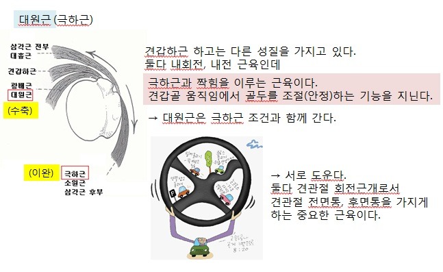 이때 견관절 움직임이 발생하면 상완골두가 벌써 앞으로 이동되어 있기 때문에 잘 관찰하여야 한다.