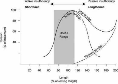 근육의 장력 생산은 근육의 휴식 길이일 때 가장 크다. 만약 근육이 늘어나거나 또는 짧아져 있으면,