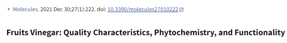 이에 따라 이러한 영양소를 공급하는 방법 개발에 대한 관심이 높아지고 있으며, 식초는 개선된 기능성 식품을 개발하는 데 유망한 가능성을 제시합니다. 식초는 식품 조미료로 사용되는 것 외에도 여러 음료의 주요 성분으로 사용됩니다. 따라서 식초 관련 제품 시장과 진정성 있고 고품질의 과일 식초 제품에 대한 수요가 증가할 것으로 추정되었습니다(2, 16). 과일 식초의 지정은 과일 주스와 식초를 혼합한 제품에도 적용됩니다. 그러나 소비자의 고품질 및 좋은 식품 제품에 대한 관심 고려 시, 최종 제품에 자연스러운 과일 특성을 제공하기 위해 과일에서 제조된 식초의 유형을 명확히 하는 것이 중요합니다(16).