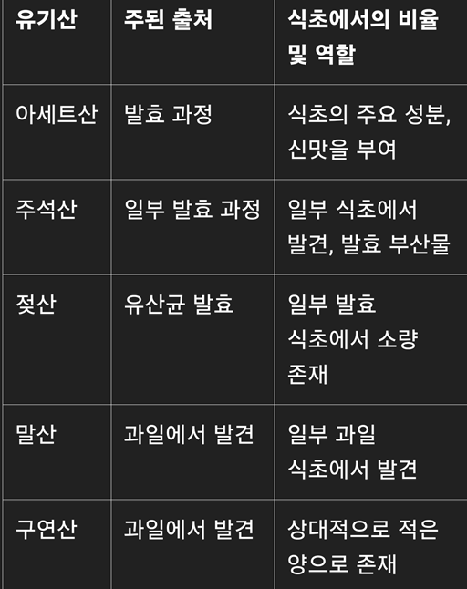 독특한 향과 맛을 지닌 다양한 종류의 식초가 존재합니다(3, 5, 6).