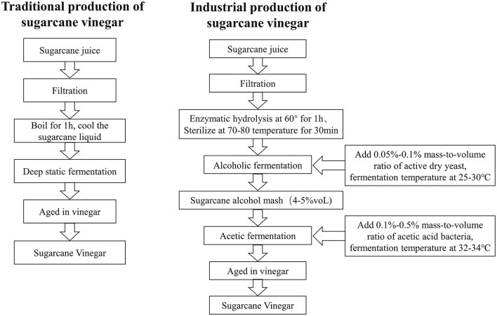 Sugarcane is the world's largest source of sugar, and the main crop in many regions, and as a C4 plant with high energy efficiency, it is more important than other crops in terms of renewable energy utilization rate and crop production capacity. It has wide adaptability, stress tolerance, a high net energy ratio, and yield potential. Crop growth characteristics, widely planted in tropical and subtropical regions, not only as the main raw material for the sugar industry but also as a vital energy crop, the average annual biomass production is 180–200 t/ha, the yield as raw material, and ethanol production are significant due to other crops. The use of commercial promoters to initiate acetic fermentation or the implementation of cutting-edge techniques to produce high-quality sugarcane vinegar is an interesting research area discussed in this article with key importance given to the production process of sugarcane vinegar.