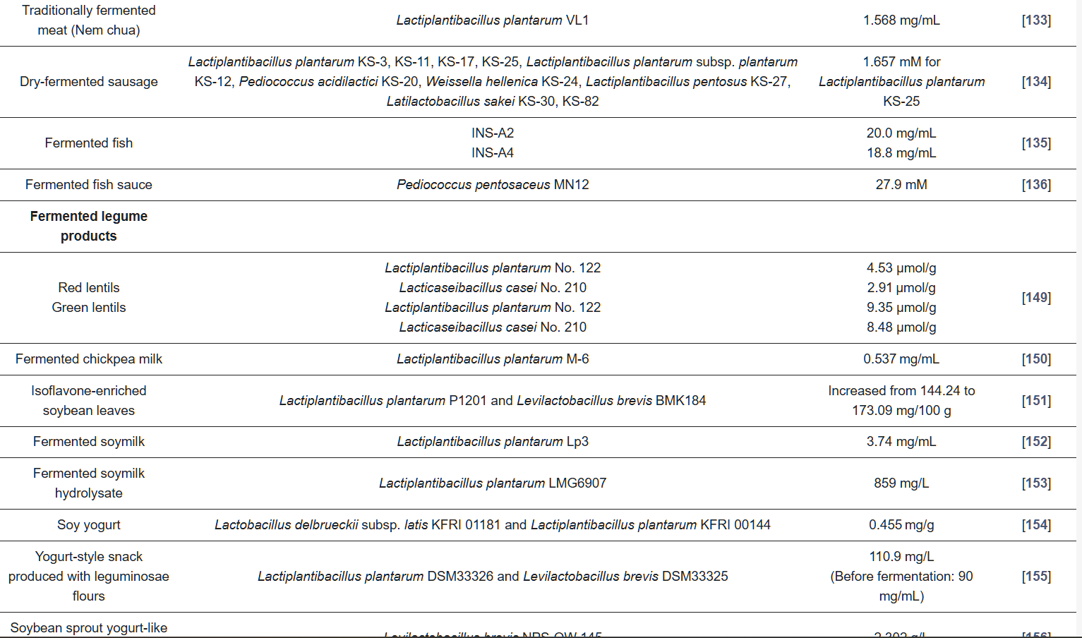 Lactobacilli 속, 특히 Levilactobacillus brevis, Lactobacillus delbreuckii subsp. bulgaricus, Lentilactobacillus buchneri, Limosilacobacillus fermentum, Lactobacillus helveticus, Lacticaseibacillus paracasei, 및 Lactiplantibacillus plantarum [17]에서 보고되었습니다.