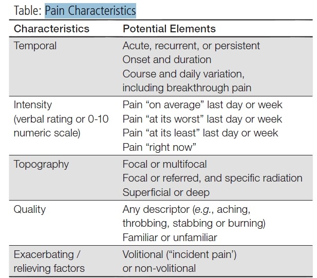 통증은 반드시 세가지 측면으로 기록되어야 한다. 특히 만성통증