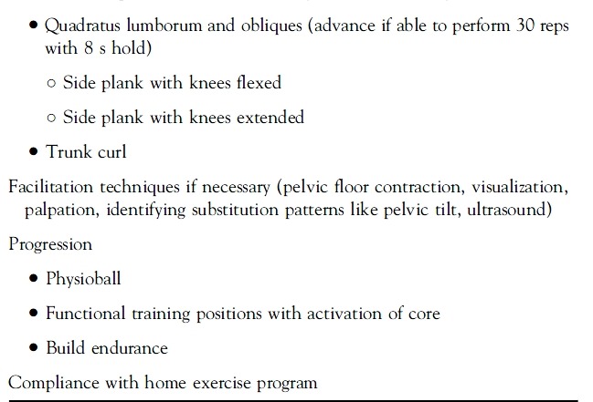 & Quadratus lumborum and obliques (advance if able to perform 30 reps with 8 s hold)