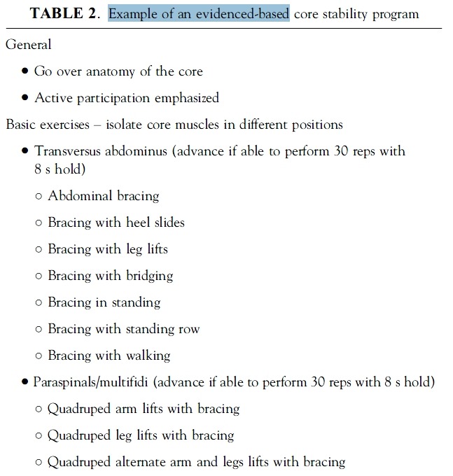 - 이 논문의 목적은 코어강화운동의 이점에 대해서 검증된 증거를 제공하고 코어강화운동의 원리를 설명함.