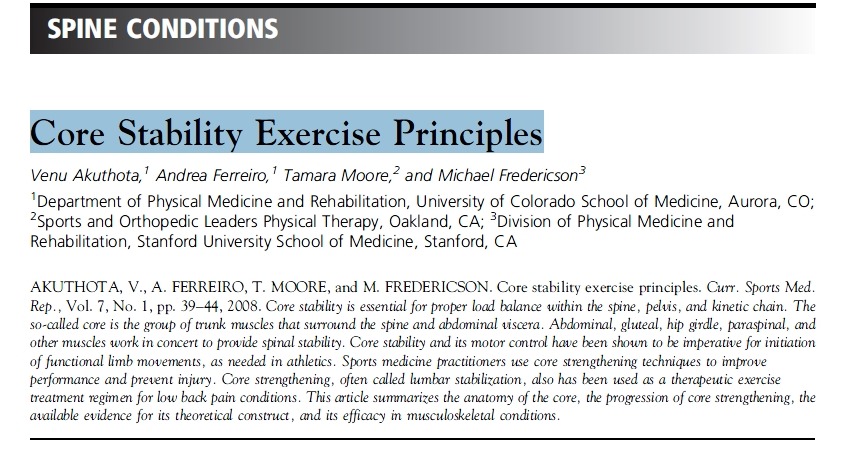 principles. Broad benefits of core stabilization have been touted, from improving athletic performance and preventing