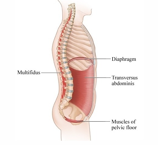 - 인체가 기능적 움직임을 하는 동안 코어의 muscular box내에 29개의 쌍으로된 근육으 척추, 골반, kinetic chain의 안정화에 도움을 줌. 이러한 근육의 기능없으면 척추는 90N도 안되는 압축력(Compressive force)를 견디지 못하고 불안정해짐.