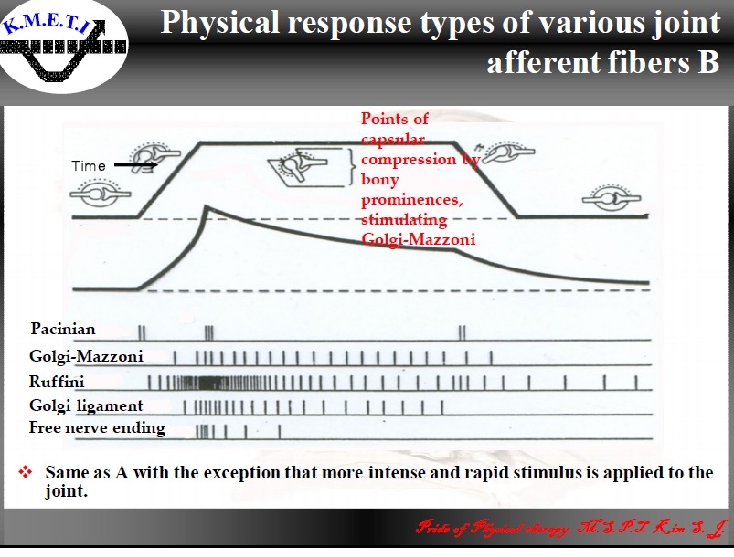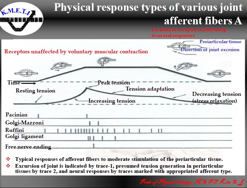 이러한 두 종류의 수용기 이외에도 근막에 주로 분포하여 통각과 심부의 촉각을 전달한다고 생각되는 자유신경종말과 약간의 파치니층판소체가 있다.