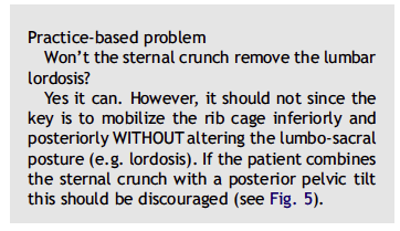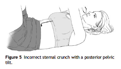 A novel approach to achieving stronger co-activation of all abdominal wall muscles is to observe the position of the anterior chest wall (Kolar, 2007 ). A cephalad position which can be thought of as an ‘‘inhalation’’ position is inhibitory of the normal